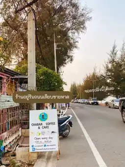 Chabar Coffee, a super chic cafe on the beach road in Pranburi🌴The highlight of this place is that it is an open shop with cushions to sit in front of the shop to see the beach view or you can sit inside the shop. But the signature is to sit in front of the shop and take cool photos to check in. It gives a feeling like you are in Vietnam. The shop is decorated in a reggae style, perfect for being high, hahaha 😆