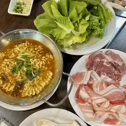 🥩 Recommended menu: dry-aged pork belly, frozen pork belly, ramen, tofu soup, fresh vegetables, lots of Korean snacks to choose from