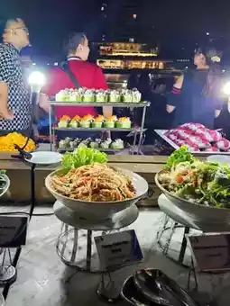 💸 Dinner buffet from 7:45 PM to 9:45 PM, 890 baht per person. Overall, I was impressed. The view is good. The staff is good. The food is delicious. I will definitely go again because I will be full in both my stomach and my eyes with the beautiful night view.