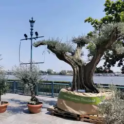 At the back of the mall, there is a wide, long walkway area with a beautiful view of the Chao Phraya River.