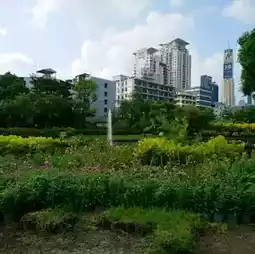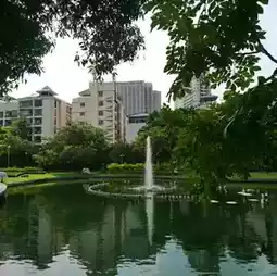 .. The public park is not very large, but it is cool with big trees, ponds, and fountains.