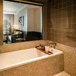 🏨 The centrally located hotel near Huai Khwang MRT station is easily accessible with parking available. The spacious bedrooms offer city views and a bathtub with exfoliating salt. The beautifully designed lobby, especially the cozy library corner, is a must-see for anyone visiting.