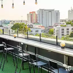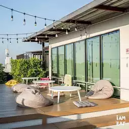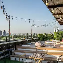 🍹 🌅 Enjoy a cup of coffee on the Commu Rooftop Cafe hidden in the Soi Vongsawang. The atmosphere is great with a full menu and a stunning view. It's perfect for hanging out or working while watching the sunset. The ambiance is amazing!
