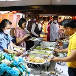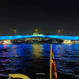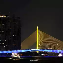 The boarding point of the Angsana is the pier in the Navy Auditorium. The round trip takes about 2 hours. The boat will sail along the Chao Phraya River. We will see beautiful architecture along both sides of the river, decorated with beautiful lights, such as Wat Arun Ratchawararam, the Grand Palace. Tha Maharaj, Tha Wang Lang, Phra Phutthayotfa Chulalok Bridge, Kuan Yu Shrine, Harbor Department, Wat Bukkhalo, Naval Auditorium, Icon Siam, Asiatique, etc. As for the food served, it is Thai-Western savory food, Thai desserts and fruits. Everything is delicious. And the more you eat, enjoy the atmosphere, and enjoy the cool breeze that blows gently, the more delicious it becomes, making you feel even more hungry.