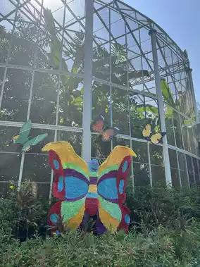 🦋Leave the air-conditioned zone and open the door to the butterfly garden. Decorated as a garden in a dome There are trees, a fish pond, a fountain. There are many butterflies. You can walk and play with the butterflies. But it is written that you cannot make loud noises. Or the butterflies will be startled.