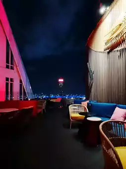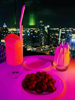 The restaurant is on the 55th floor, while the bar is a little further up the stairs outside. On days when the sky is clear and dust-free, you can see the view of Bangkok as far as the eye can see. The atmosphere is nice and the view is beautiful. You can come to have dinner with your loved one or come alone and order a drink and sit and enjoy the view. The staff are lovely and take good care of you.