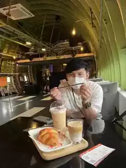 ✈️The inside is like being on a plane. There are tables and chairs lined up along the aisle. There are seats by the window and a bar. There are many drinks to choose from: coffee, green tea, and cocoa.