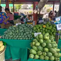🛶🛶 The front area of Taling Chan Floating Market is full of fresh food, fruits, trees, and food. If you walk further, you will find a very serious food zone. Mostly som tam, grilled fish, and eating on a raft in the canal.