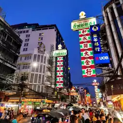 Bangkok's Chinatown can be called a food street. Tourists from all over the world come here for the various street food. It is very lively. There are all kinds of stalls selling barbecued seafood, skewers, pork soup with rice noodle soup, various desserts, bird's nests, seasonal fruits, durian, etc. You can eat from the beginning to the end of the street. When you are full or tired from walking, you can find a massage parlor to have a foot massage before going to Wat Mangkon subway station to take the subway back to the hotel to rest.