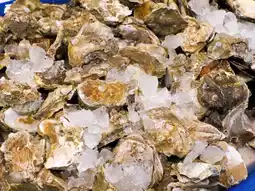 New Zealand mussels, oysters, sweet clams, cockles, salmon steak