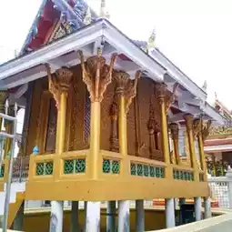 The art from the gable and stucco patterns of Ayutthaya craftsmen This temple is next to Khlong Bang Luang, Baan Silpin, originally called Wat Sala Si Na. But unfortunately, the chapel is not open to visitors. Antiques and Buddha images from the Ayutthaya period were invited to be placed in other temples.