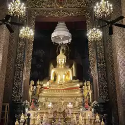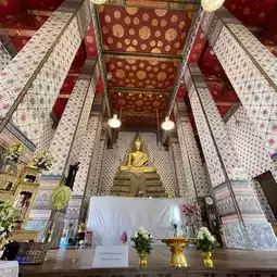 People from both Thailand and abroad travel to pay homage every morning until dusk to ask for blessings to reinforce their determination for happiness and success, and the beautiful principal Buddha image, which is located opposite Khao San Road.