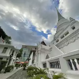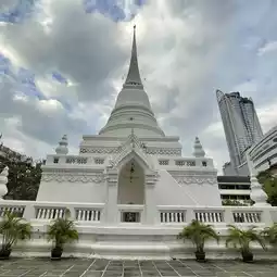 Move into the temple in the business district - Wat Pathum Wanaram Ratchaworawihan, a peaceful temple located on all sides, convenient and crowded in the commercial district, near the BTS Siam, a simple white temple, pay homage to the principal Buddha image and remember the teachers who gave moral value to the world. We are reminiscing about Venerable Ajahn Man Phurithatto (Luang Pu Man) on this auspicious day. Sit with your eyes closed, bring your mind to review your breath for a while, and then get up calmly and continue.