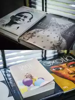 The bookshelf is filled with the biography of King Bhumibol Adulyadej of Thailand.