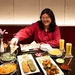 🛌 Moo came to stay in the TRIBECA DELUXE room. For anyone looking for a convenient place to stay, with usable space, a work corner, a big TV to watch series, and a place to chill and enjoy the city view from the room, along with a swimming pool, fitness center, bar and drinks, original Indian food by an Indian chef. I recommend coming to #BelAireBangkok. Moo doesn't usually eat Indian food, but I must say that this place is so delicious that I had to tell my friends to come and try it.