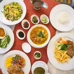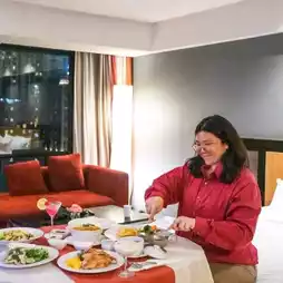 🥘At night, if you're hungry, order Room Service to be served to your room. There are many types of food to choose from and you can sit and watch a movie in private like this.