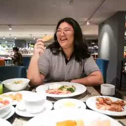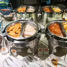 🍞 Breakfast has a variety of menus to choose from, including bakery, egg menu, boiled egg, rice, fruit, vegetable salad, tea, coffee