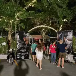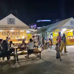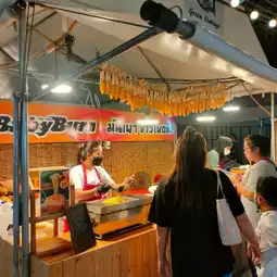 Atmosphere/Location - It is an open-air market, arranged into booths. There are zones for clothing, accessories, fashion items to walk around and shop, and a section for street food with inexpensive prices to choose from. The market has arranged seats for sitting and eating. There is a small stage and live music to listen to and chill. We can take pictures from the corner of the market with the Chang Building as the background, very beautiful.