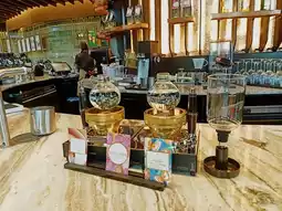 Atmosphere: It is a very large area that can accommodate a lot of customers, with both an indoor area of over 270 seats and an outdoor area of about 80 seats. You can see the view of the Chao Phraya River. The interior is beautifully decorated in a wooden theme. There are 2 floors of seating inside. Every corner is a photo corner. It is perfect for cafe lovers or anyone looking for a place to sit and think about work and find ideas to enjoy a cup of coffee.