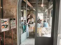 A cafe converted from an old printing house. The word "IM En Ville" is a French name meaning "I am in the city". In addition, the word IM is similar to the word "Im" in Thai, so when calling the shop in Thai, it is called "Im in the City".