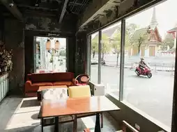 ✨📸 The highlight of the cafe is the sofa zone or tables by the large glass windows. If you take a photo outside the shop, you will get a view of Feuang Nakhon Road and Wat Ratchabophit as a backdrop.