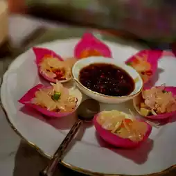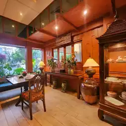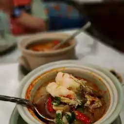 Since the reservation was for dinner, when the taxi arrived I was deeply attracted by the golden two-story mansion with extremely Thai architecture. Adopted by the waiter into the lobby, traditional wooden carved beams and installed horizontal beams, extremely artistic, gallery restaurant, absolutely worthy of its name, full of rhyme. The restaurant is famous for its Thai curry dishes, of which Sri Lankan curry crab🦀 is the most signature dish. The rest of the dishes also express the tradition of Thai royal cuisine. The cutlery and presentation of food are very elaborate, and the restaurant is also very attentive. In addition to the Thai text menu, there is also a preset picture menu 👍, for foreign tourists to order dishes is also very convenient, clear price. It saves many language communication problems.