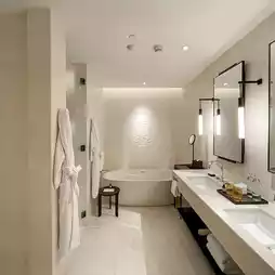 In addition to the spaciousness, the quality of the room and decoration also won our hearts. Everything is arranged in very good proportions. The dressing room is not next to the bathroom, which may disrupt the flow a little, but it is not a problem. The bed and pillows are soft and comfortable to sleep on without back pain. The work desk is very wide. We like that all the light switches are clearly marked with what they are for. We also really like the bathroom. The shower is so comfortable that you don't want to finish showering. And the stone flower sculptures on the bathroom wall are a detail that helps to add a touch of luxury to the room. #thailand #bangkoktravel #bangkok
