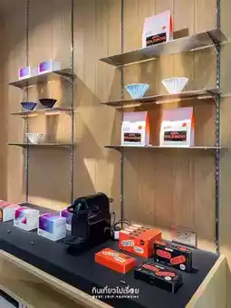 🥖🥐 Let's get back to our coffee shop. The shop has both air-conditioned and outdoor zones. If you like a relaxing and uncrowded atmosphere, we recommend sitting outside. Here, you can choose your own coffee beans. There are also non-coffee menus such as matcha, cocoa, Thai tea, yuzu, and bakery items to eat with it.