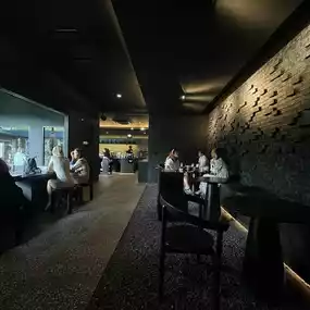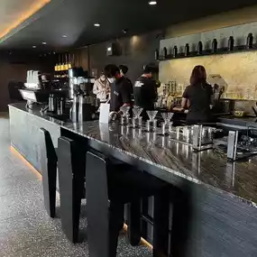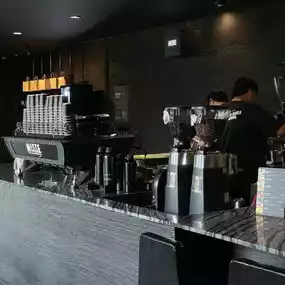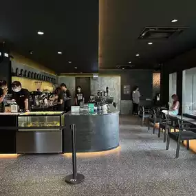 A dark-toned cafe, very minimalist in the Chaeng Watthana area