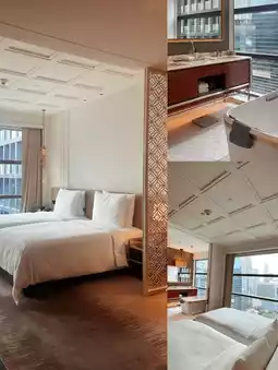 🛌🛏️The bed is so comfortable that I don't want to get up😂The hotel also provides a bed-making service at night, which is the most considerate service I feel, bringing a warm feeling of home to guests who go out shopping and sightseeing. ☺️The bathroom in the room is equipped with a Dyson hair dryer, a bathtub and two wash basins, which is very suitable for two people. 🧖🏻🧖♀️The hotel’s swimming pool not only allows me to relax and rest, but is also a great place to check in📸.
