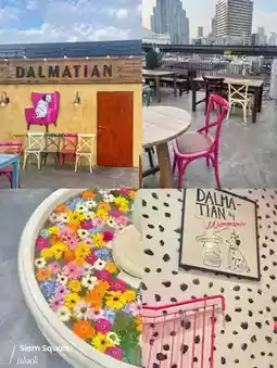 • Today, I'll take you to Dalmatian, a super cute shop in Siam. The atmosphere in the evening is great. The city view is amazing. We went on a weekday, so there weren't many people. If you're tired from shopping and want to sit and chill, this super cute cafe is recommended. 🐶💗 The shop has 4 floors in total, decorated like the parent branch in Korea ~