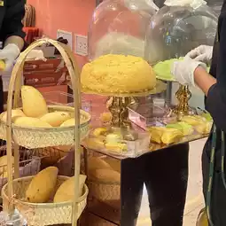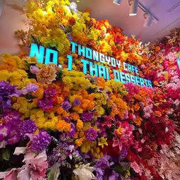 The first thing you will see is the warmth glow and lots and lots of floral bursting to invite you to walk in to this shop. Staff freshly making mango sticky rice near the entrance of the shop. You can smell the sweet mangoes!