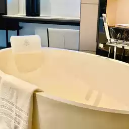 The egg-shaped bathtub with attractive lines is hung with a comfortable pillow seat. The bathtub comes from the Australian boutique bathroom brand apaiser. The revolutionary and unique material is thick marble material rich in Australian minerals to create a wide bathing space in the inner bathtub. The large-sized bathtub length allows the whole body to soak in time Get total relaxation and make every bath feel like entering a world of luxurious bathing.