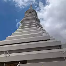 Wat Paknam (temple) had a white pagoda, and on the top floor was a green glass pagoda, which was very beautiful, and the ceiling painting inside the pagoda was also wonderful.