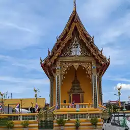 Get off at Tha Phra Station on the BL Line (Blue Line) of the MRT (subway) and walk for 15 minutes from the station through the old Thai townscape.