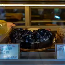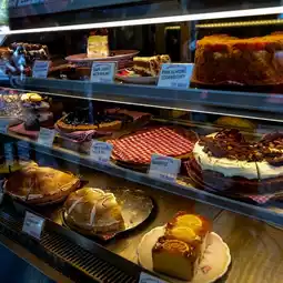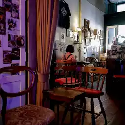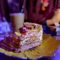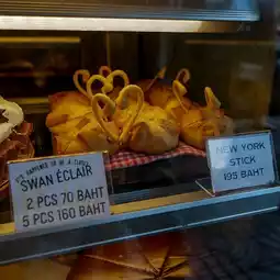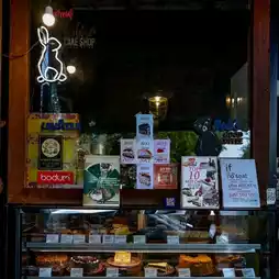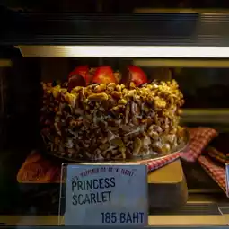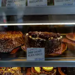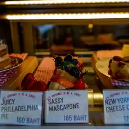 A small shop in Tha Tien area, right across from Wat Pho. It's easy to find. When you walk past, you'll be struck by the display case full of cakes. It looks great. The shop is small with about 5-6 small tables. It's decorated in a vintage style with a pub feel and neon lights.