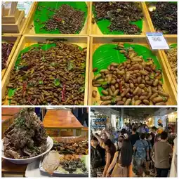 All kinds of Thai snacks as this can be found, fruit, seafood, worms, barbecue, drinks ..... 😋😋😋😋