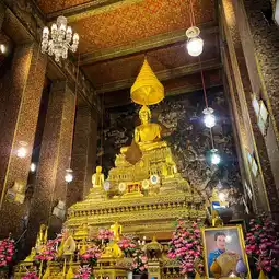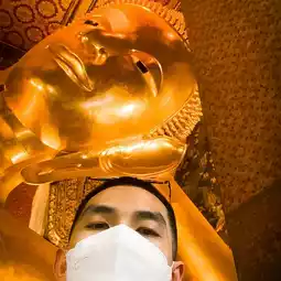 I think my merit is almost gone... During the Covid period, everything was difficult, so I had to come and pray to the Buddha of my birth day for good luck. Get off at MRT Sanam Chai and walk another 300 meters to reach Wan Pho. Walking past a high school in the evening made me think of myself waiting to get out of school in my school uniform. Oops!! Off topic, Wat Pho has a lot of tourists. It takes about 15-20 minutes to walk around. After praying to the Buddha and sleeping, I felt so relieved.