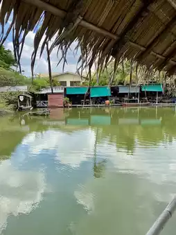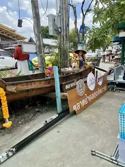 I came here. Khlong Lat Mayom Floating Market. My friend recommended that there are many delicious foods here. I came to follow his footsteps.