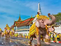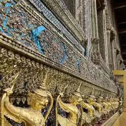 One of the top attractions in Bangkok is the Grand Palace, former residence of the royal family. The ticket covers the Temple of the Emerald Buddha, the Grand Palace, the Queen Sirikit Museum of Textiles, and a cultural show at the Royal Theatre, and everything must be visited in that order since the flow is in one direction. We arrived around 1pm and caught a free English tour at 1:30p, visited the Temple, Grand Palace, and Museum of Textiles before catching the shuttle to the theatre and seeing the 4pm show.