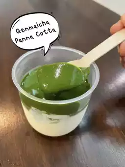 🍵 Genmaicha Panna Cotta, if you love strong green tea, you can't miss this menu. The green tea on top is very strong, but don't be afraid that it will be too strong because the panna cotta on the bottom is very smooth, sweet, and dense. 5555 It goes well together!