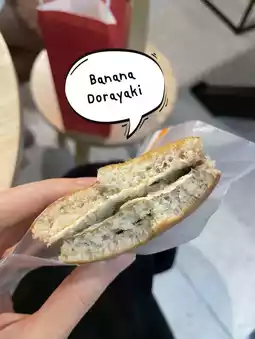 🥯 When I saw this shop, I had to say that I really wanted to eat Matcha Dorayaki, but!!! When I got there, it was sold out. Oh no 😭😭😭 So I had Banana Dorayaki instead. It felt like eating banana cake, soft dough, fragrant banana, not too sweet. Delicious! 🍌
