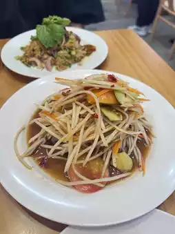 ⭐️ Summary score 8/10 The price is quite high, but it's an air-conditioned som tam shop that you can't miss. The highlight is the grilled pork. You have to try it. But if you want to meet Jay Daeng in person, go to the Samyan branch. We went there and Jay Daeng thought she wasn't a Thai person. Speak English to the max🤣