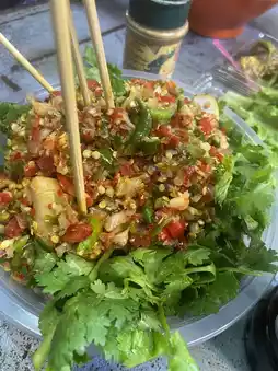 Yaowarat Road is surrounded by street food. At night, it is a tourist attraction for Thais and foreigners. Here, there are many types of food to choose from, shop for, and taste delicious food. Many are popular among foreigners and Thais. There are both savory and grilled food and desserts. And cold drinks