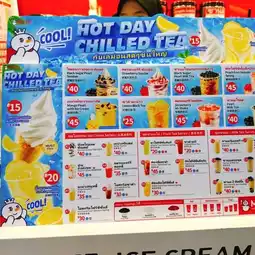 15 baht per cone, 20 baht per glass of lemonade, and 40 baht for a sundae with pearls. These are affordable prices in this area.