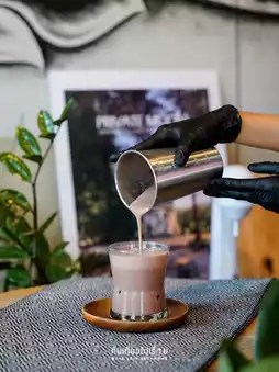 🍫 We chose chocolate from Chumphon. You can order it hot or cold. The scent is buttery, slightly sweet, a little creamy, and smells like fruit jam. Overall, I feel that it is not like your typical chocolate drink. I recommend you to try it.