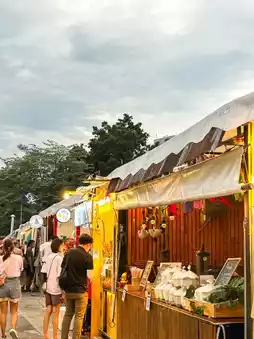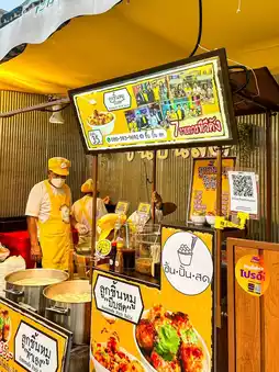 ✨ Highlight: Jodd Fairs Market used to be on Rama 9 Road, but they have moved to a new location at the Land of Magic in the Lat Phrao area. There is more space to sit and relax than before, but there are still a lot of food items. There are a lot of shops and a lot of delicious food items. I can tell you that going there once is not enough. You have to go back again because there are so many items you want to eat. There are seats to choose from, such as tables or on the grass.