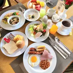 🥐 Breakfast: Included with the room If you book a room without breakfast, add only 320 baht. Breakfast is a buffet line with everything, including American Breakfast, egg station, bacon, ham, sausage, as well as Thai food, stewed vegetables, fried rice, stir-fried vegetables, porridge, soup, full bakery, salad corner, fruit