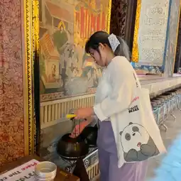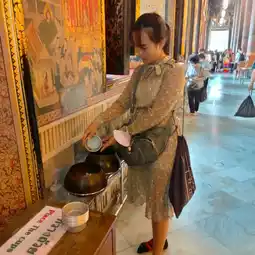 We have beautiful Thai costumes to change into and take photos. Prices are in the hundreds. Beautiful, matching the Thai temple. Beautiful Thai clothing.