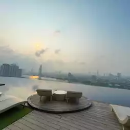 The highlight is the 🏊 swimming pool on the 26th floor. It is an infinity pool that feels connected to the Chao Phraya River. The atmosphere is nice. It's great for taking pictures. You can swim and enjoy the Chao Phraya River and the city view.